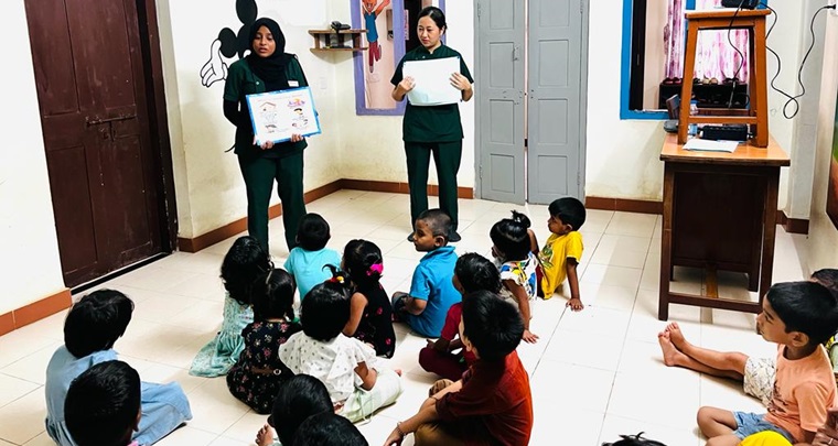 The awareness session on “Personal Hygiene and Environmental Hygiene” was interactive and was deliberated by Ms. Rechangben Imchen and Ms. Aminath Sima, I Year MSc Nursing students. The session highlighted adopting healthy habits, hand hygiene, the proper technique of brushing the teeth, taking a bath, grooming, and following a daily routine. The session also emphasized the importance of keeping their surroundings clean and ways to prevent mosquito breeding sites at home and bites. The students also