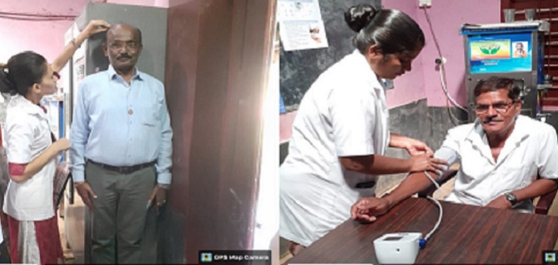 After the initial check of Height, Weight, and BMI, the participants were guided to the counter where their blood pressure and Random Blood Sugar were checked. A total of 43 people were screened. Out of them, five were found to be having elevated Random Blood Sugar (RBS) and one out of them was newly detected. Eight people had their Blood Pressure (BP) elevated and out of them 7 were on antihypertensive drugs and one was newly detected. Every participant was given the Health Check Cards with their brief identity and the screening details. All who came for health checks were given awareness on Diabetes Mellitus focusing on the risk factors, clinical manifestations, complications, and management including lifestyle modifications, foot care, and those who were known diabetics and hypertensives were told about the importance of medication adherence. All were distributed an apple and the children who accompanied their parents were given chocolates as a kind gesture from our end. Those who were newly identified to have high BP and elevated RBS were emphasized to go for further checkups.