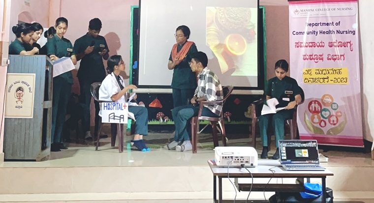 On November 15, 2023, the Department of Community Health Nursing and the final-year BSc Nursing students conducted a diabetic screening and awareness program for class IV workers of MAHE, Manipal, at MCON. A total of 62 participants were registered and screened for diabetes mellitus, and 11 people identified with increased random blood glucose were referred for further checkups. Health awareness on diabetes mellitus was also conducted between 10:45 a.m. and 11:45 a.m., and 48 participants attended the program. On November 16, 2023, the fifth-semester BSc Nursing students organized an awareness program between 11.30 a.m. and 12.30 p.m. at Government Higher Primary School (GHPS), Athrady, and presented a role play on the theme “Access to Diabetes Care," followed by a short quiz for the students of GHPS school. A total of 60 schoolchildren participated in the program. The activities were coordinated by Mrs. Jeyalakshmi K. and Mrs. Manjula, Assistant Professor, Department of Community Health Nursing, MCON MAHE, Manipal.