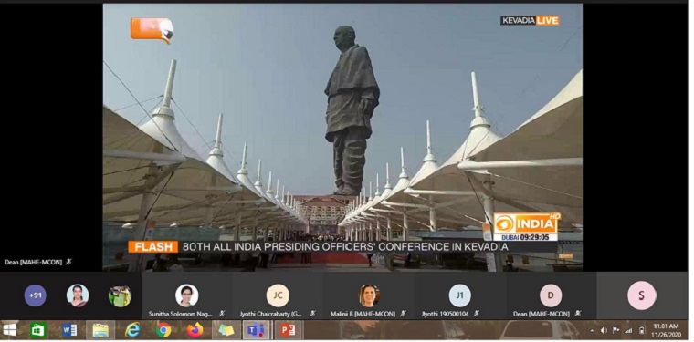 A webinar on the topic “Constitutional values and fundamental principles of Indian constitution” was organized between 12 noon and 12.45 pm to cherish the glory and reaffirm our commitment to uphold the ideology of great Indian constitution. Dr Nanda Kishor M S, Associate Professor, Department of Geopolitics & International Relations, and Coordinator of Centre for Polish and Central European studies MAHE Manipal shared his expertise on the subject. He emphasized the importance of Constitution Day, the significance of its celebration and commemorated the people who contributed to the development of Indian constitution. He highlighted the basic differences of Indian constitution than that of other countries with examples indicating the prerequisites of the constitution such as societal, familial and individual needs. The preamble of Indian Constitution i.e India to be a sovereign, socialist, secular and democratic republic which is aiming to secure justice, liberty, equality to all citizens and promote fraternity to maintain unity and integrity of the nation were stressed in his speech as these rights are necessity and are not a privilege. The session was conducted as a webinar through Microsoft Teams and was attended by 74 students, 39 faculty and 4 non-teaching staff of Manipal College of Nursing, MAHE, Manipal.