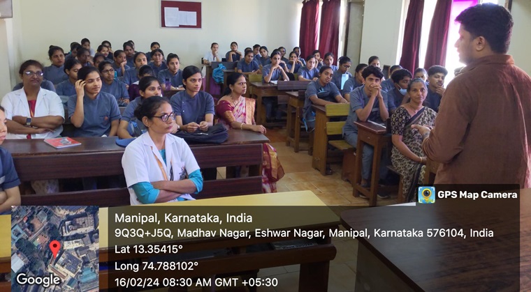 Manipal School of Nursing, MCON, MAHE, Manipal, had organized a guest lecture on the topic “ROLE OF A NURSE IN MEDICAL ASSESSMENT UNIT” by Mr. Srikantha, Band 5 Registered Nurse, North Devon District Hospital, Barnstaple, UK, on February 16, 2024, at 8 am for 3rd year DNM students.