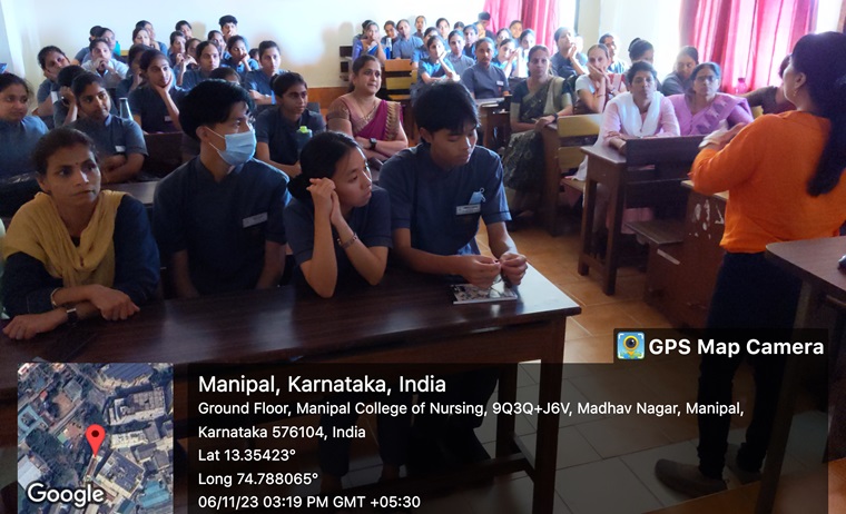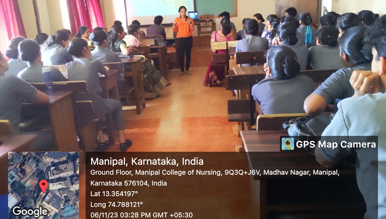To sensitize the final-year students of MSON, an alumni guest lecture on the topic ‘Care of Deteriorating Patients’ was organised by the Manipal School of Nursing, MCON, MAHE, Manipal, on November 6th, 2023, at 3.00 pm. Ms. Soumya, (alumnus of MSON-Diploma(N): 2000-2003 batch), Band 5 Registered Nurse, Integrated Assessment Centre (IAC), Boston, UK, explained the duties and responsibilities of a nurse in IAC, Boston. She discussed the ABCDE approach during the patient’s arrival. She also briefed about the National Early Warning Signs (NEWS) of Sepsis. The session was experience-driven and very informative. The lecture series was conducted onsite in the classroom of MSON and was attended by 60 students.