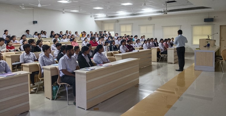 The Department of Medical-Surgical Nursing, Manipal College of Nursing (MCON), Manipal Academy of Higher Education (MAHE) organized a guest lecture for third-semester BSc Nursing students on ‘How nurses can care and uphold core values’ on August 20, 2024, between 8.00 am and 9.00 am at Lecture Hall 2, third floor, Basic Sciences building MAHE, Manipal. Mr Gilbert Martis, RGN, Principal Trainer, CEO, & Director, Health Skills Training Academy, England, was the resource person for the session. In his deliberation, he mentioned that it is vital for nurses to keep personal problems separate from the clinical setting to maintain a clear focus on patient care, ensuring that personal stressors do not compromise their judgment or performance. He highlighted that maintaining proper energy levels and body posture is crucial for nurses, as it directly impacts their ability to provide safe and effective patient care. He also explained the importance of teamwork, fostering collaboration, the importance of human touch, good communication for the overall well-being of the patients. The session benefited 124 students in the third semester, MCON MAHE, Manipal. This session was centered on Sustainable Development Goals (SDG) 3 & 4, i.e. Good health & wellbeing and Quality education, respectively. The event was organized and coordinated by Dr Shalini G Nayak, Assistant Professor, Medical Surgical Nursing, MCON, MAHE Manipal.