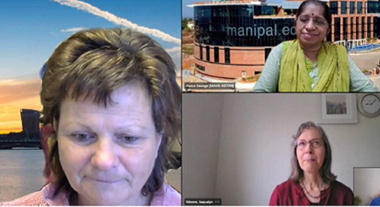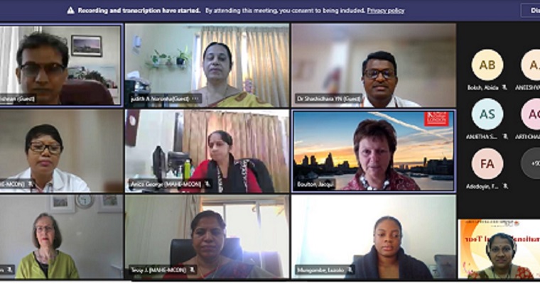 An International Virtual visit to Manipal College of Nursing (MCON), Manipal by the students of Florence Nightingale Faculty of Nursing, Midwifery & Palliative Care King’s College London was organized on 18th March 2022. The purpose of the visit was to provide an opportunity to interact with International students and mutually share the experience of health care service delivery, women’s health, Ayurveda and Women’s Health. The program commenced with the welcome address by Dr Elsa Sanatombi Devi followed by an introduction on a virtual tour by Dr Jacqui Boulton faculty of King’s College London gave glimpses of previous virtual tours and expressed the previous years success of winning award and MCON also be the partner of it. Dr Judith A Noronha, Dean, MCON briefed about the MCON achievements and courses available at MCON Manipal. Dr Raghu A Radhakrishnan, Director – International affairs and collaborations, MAHE addressed the gathering. In his speech, he appreciated MCON for organizing such events and highlighted the intercultural competencies and importance of lessons learnt from COVID and its impact on internationalization.