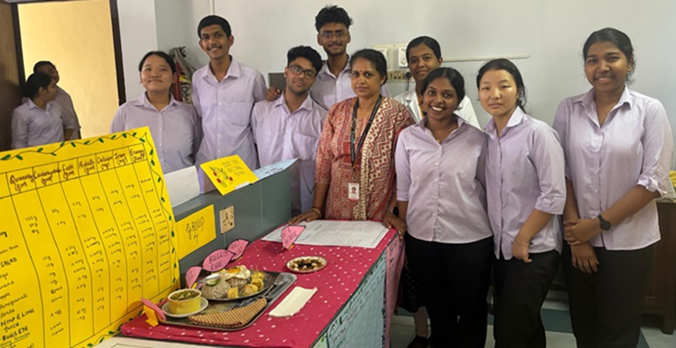 On the day of the presentation, the students prepared the menu plan by applying the principles of hygienic cooking and displayed the menu with a brief presentation. The project was evaluated by Dr. Sushmitha R. Karkada, Assistant Professor, Department of OBG Nursing; Dr. Sangeetha Priyadarshini, Assistant Professor, Department of Child Health Nursing; and Dr Ansuya, Associate Professor, Department of Community Health Nursing. The project was coordinated by Dr. Ansuya, Associate Professor, and Ms. Christina Esther C. Lecturer, under the guidance of Dr. Shashidhara Y N. HOD, Department of Community Health Nursing, MCON, MAHE Manipal.