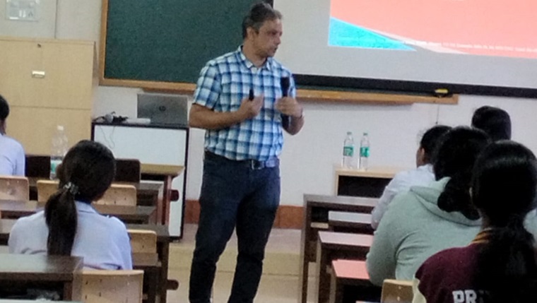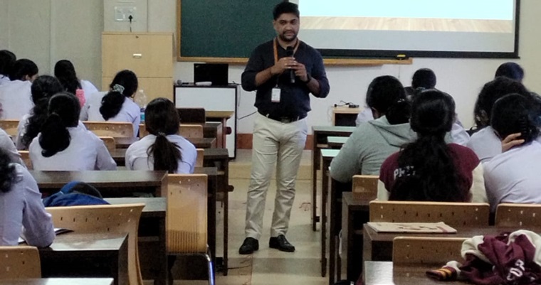 Dr. Vikram Baliga, Associate Professor, Department of Commerce, MAHE, Manipal, conducted a session on 'Handling Interviews', offering insights into commonly asked interview questions. The seminar was facilitated by Ms. Yana Sunil and Ms. Rose Maria Baby, IV year BSc Nursing students, who also delivered the concluding remarks.