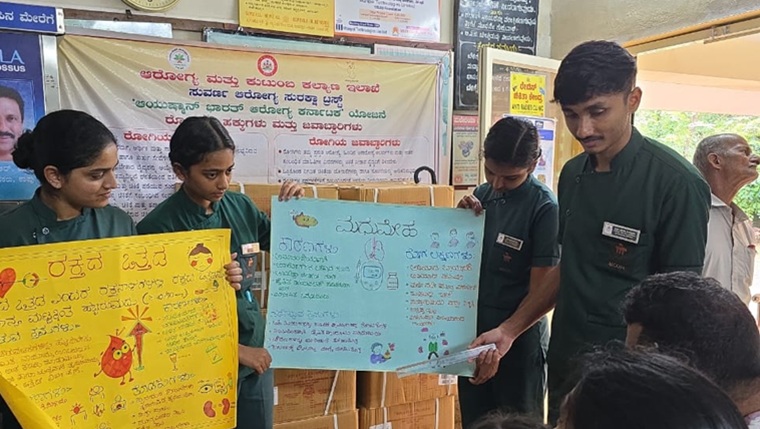 The students of the seventh-semester BSc Nursing and the Department of Community Health Nursing, in collaboration with the unit of National Service Scheme (NSS), MCON, organized a series of health awareness programmes on Non-Communicable Diseases on 18th September 2025 at PHC Hirebettu.