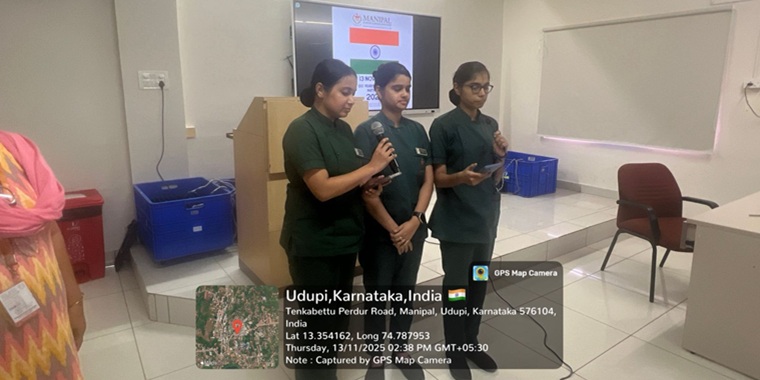 In accordance with the guidelines issued by the University Grants Commission (UGC), MCON organized a mass singing of the national song Vande Mataram to commemorate its 150th anniversary on 13th November 2025 at 2:30 PM. The activity was conducted to foster patriotism and promote unity among students and faculty members. Mrs Shobha, SNA Advisor, delivered a brief talk on the significance of “Vande Mataram,” highlighting its historical importance during India’s freedom struggle and its role in promoting national unity and integration. A total of 132 students participated in the event with great enthusiasm.
