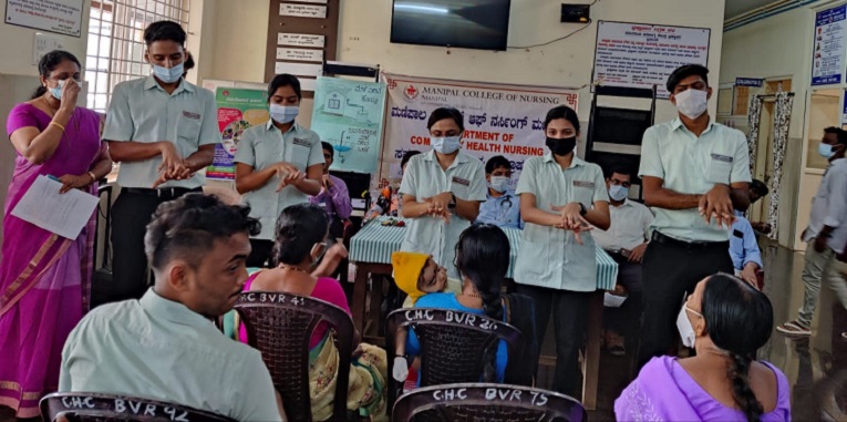 The IV year BSc Nursing students of the college organized an awareness programme on 7th April 2022 at Community Health Center, Brahmavara. The programme was inaugurated by Dr Ajith Kumar Shetty, Administrative Medical Officer, CHC Brahmavara, and addressed the audience on the theme and also the importance of inculcating healthy lifestyles and healthy behaviours to save our health and planet. Dr Mahabaleshwara KS, Pediatrician, CHC Brahmavara stressed on healthy environmental hygiene and its importance in maintaining children's health and also suggested to grow vegetables and fruits in their kitchen garden and utilising them. Dr Deekshitha, Obstetrician, CHC Brahmavar addressed the responsibilities of women in keeping environmental hygiene inside and outside their house and also maintaining personal hygiene to avoid health issues in female children and women, followed by Dr Pradeep Poojary, Dental surgeon and Dr Mahesh Aithal, Senior Medical officer, CHC Brahmavar addressing on oral hygiene and hand hygiene respectively. The students also demonstrated hand hygiene methods to the general public. A role play on “changing the world by changing ourselves to save our earth and restore health" was staged by the students. The students also participated in environmental cleaning activities in and around CHC Brahmavar. Dr Ansuya, Assistant Professor, and Mrs Reshma R Kotian, Lecturer, MCON, MAHE coordinated the event.