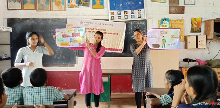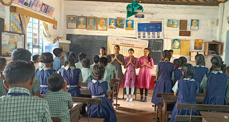 An outreach program was organized by the First Year Post Basic BSc (PBBSc) Nursing students of Manipal College of Nursing (MCON), Manipal Academy of Higher Education (MAHE), Manipal, on September 20, 2024, under the guidance of Dr. Sangeetha Priyadarshini, Assistant Professor, Department of Child Health Nursing, MCON. The event took place between 3:00 PM and 4:00 PM and aimed to raise awareness on "Nutrition for Healthy Childhood and Personal Hygiene" for 50 students of classes IV and V of Academy School, Manipal.