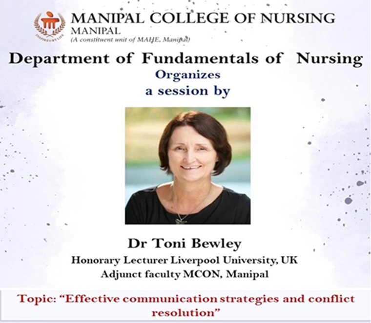 The Department of Fundamentals of Nursing at Manipal College of Nursing (MCON), MAHE, organized an insightful online session on “Effective Communication Strategies and Conflict Resolution” for the Operating Room (OR) staff nurses on October 24, 2025, from 3:00 PM to 5:00 PM.
