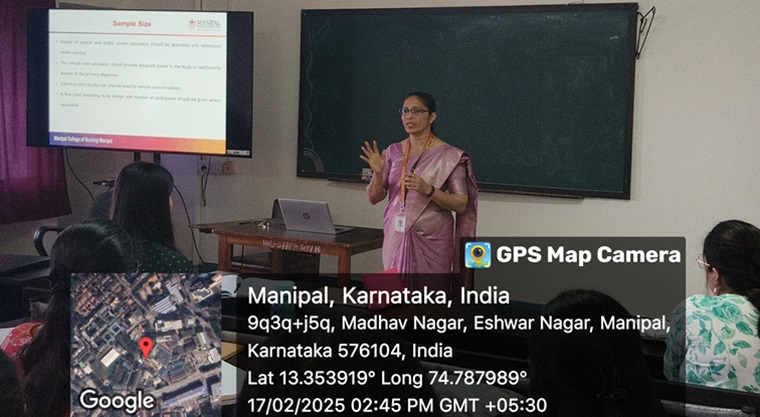 Pillar II Exemplary Research and Innovation, along with the Student Research Forum of Manipal College of Nursing, MAHE, Manipal, conducted the first session of 2025 on the topic “Writing a Research Proposal” on 17th February 2025, from 2:00 p.m. to 3:00 p.m. The resource person for the session was Dr. Melita Sheilini, Associate Professor, Department of Medical-Surgical Nursing, Manipal College of Nursing, MAHE, Manipal. The session focused on achieving SDG 4—Quality Education. Dr. Melita provided an elaborate explanation of writing a research proposal, including its benefits and the various components involved in the process. The session was both inspiring and informative and was well-appreciated by the participants. A total of 22 first-year MSc Nursing students attended the session, and e-certificates were awarded to all participants.