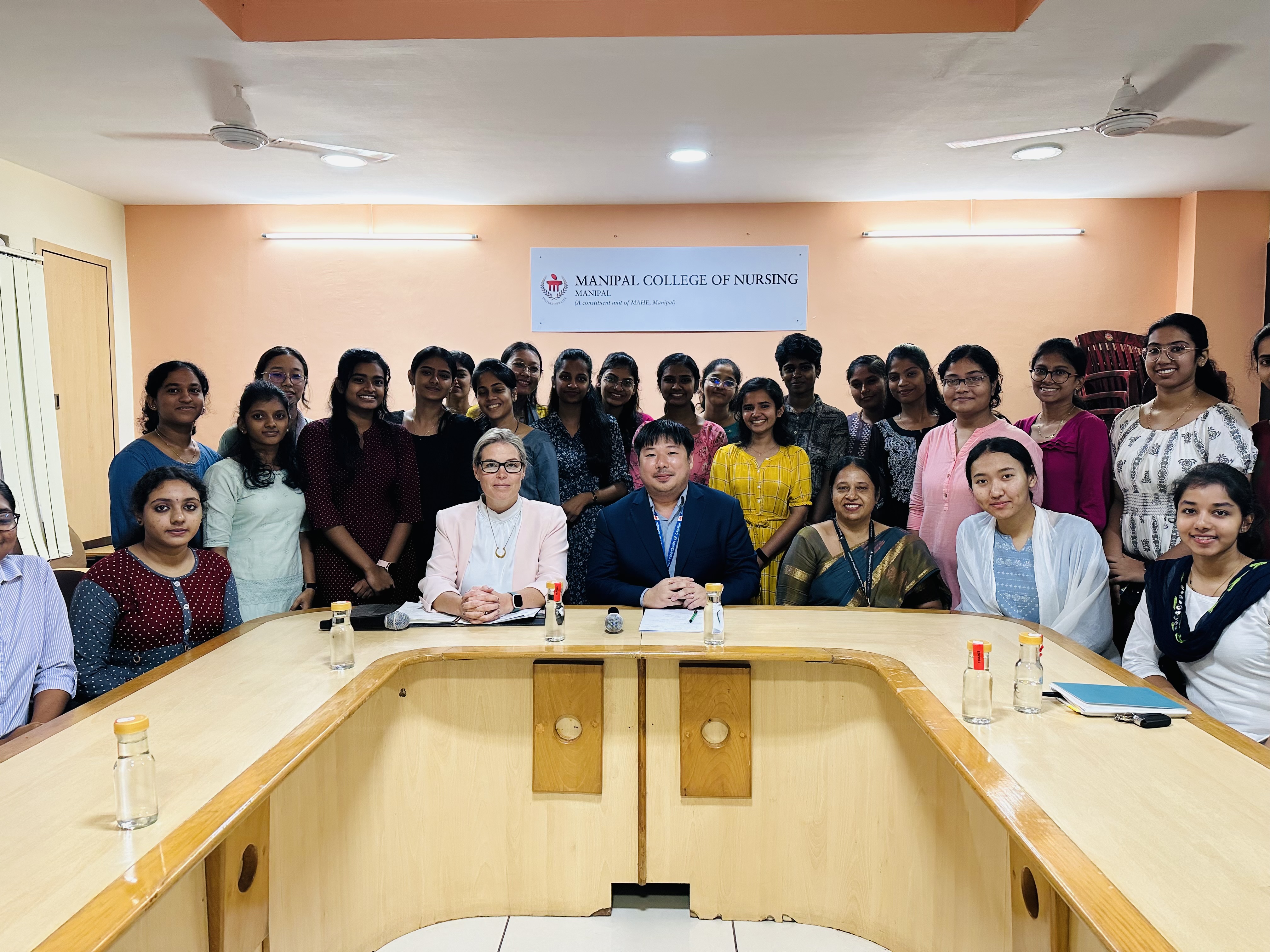 Ms Tasha Van Dasselaar Senior Project Manager& Policy Analyst and Mr Brent Lue First Secretary (Migration) Area Director Advisor visited Manipal College of Nursing on 19th June 2023 to provide information to faculty and students about the Visa process for Canada Immigration. They were orientated about the Courses offered, staffing, and curriculum implementation process, and evaluation process and discussed the UNB collaborative degree program by Dr Judith A Noronha, the Dean of Manipal College of Nursing (MCON) MAHE Manipal. The Dean also said as the SDG goals also give importance to partnership and collaboration the institution is looking for all the opportunities for collaboration with internationally reputed institutions. Mr. Brent advised the students and faculty to apply for visas directly through their official sites and avoid agents for the process. The immigration site is friendly and has adequate information to guide visa applicants. Ms. Tasha expressed that Canada is looking forward to qualified nurses and will support Indian nurses to process for Canadian immigration. This meeting was organized under the guidance of the Office of International MAHE and the meeting was attended by Professors and HODs of MCON and II semester nursing students enrolled under UNB, Canada.