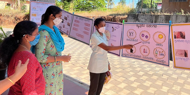 The department also organized a cancer awareness programme on 5th February 2022 at Community Health Center, Brahmavara. The programme was inaugurated by Dr Ajith, Medical Officer CHC Brahmavara, and spoke cancer and its causes to the participants, followed by his talk Dr Pradeep Poojary, Dental surgeon CHC Brahmavar addressed on oral cancer and its prevention. After the inaugural session, posters were displayed at OPD of the CHC on causes of cancer, signs and symptoms, diagnostic measures, and prevention of cancer. A total of 60 participants participated in the event. The 4th year BSc Nursing students were involved in poster presentations and explained to the participants. Along with this programme educational pamphlets and masks also were distributed to the participants. The entire event was coordinated by Dr Malathi G Nayak, Associate Professor, Department of Community Health Nursing, MCON, MAHE