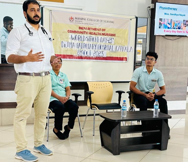 World Stroke Day was observed by the faculty of the Department of Community Health Nursing and students of final year BSc Nursing, Manipal College of Nursing, MAHE, Manipal, on October 28, 2023, from 10.00 am to 12.30 pm at Dr. TMA Pai Rotary Hospital, Karkala.