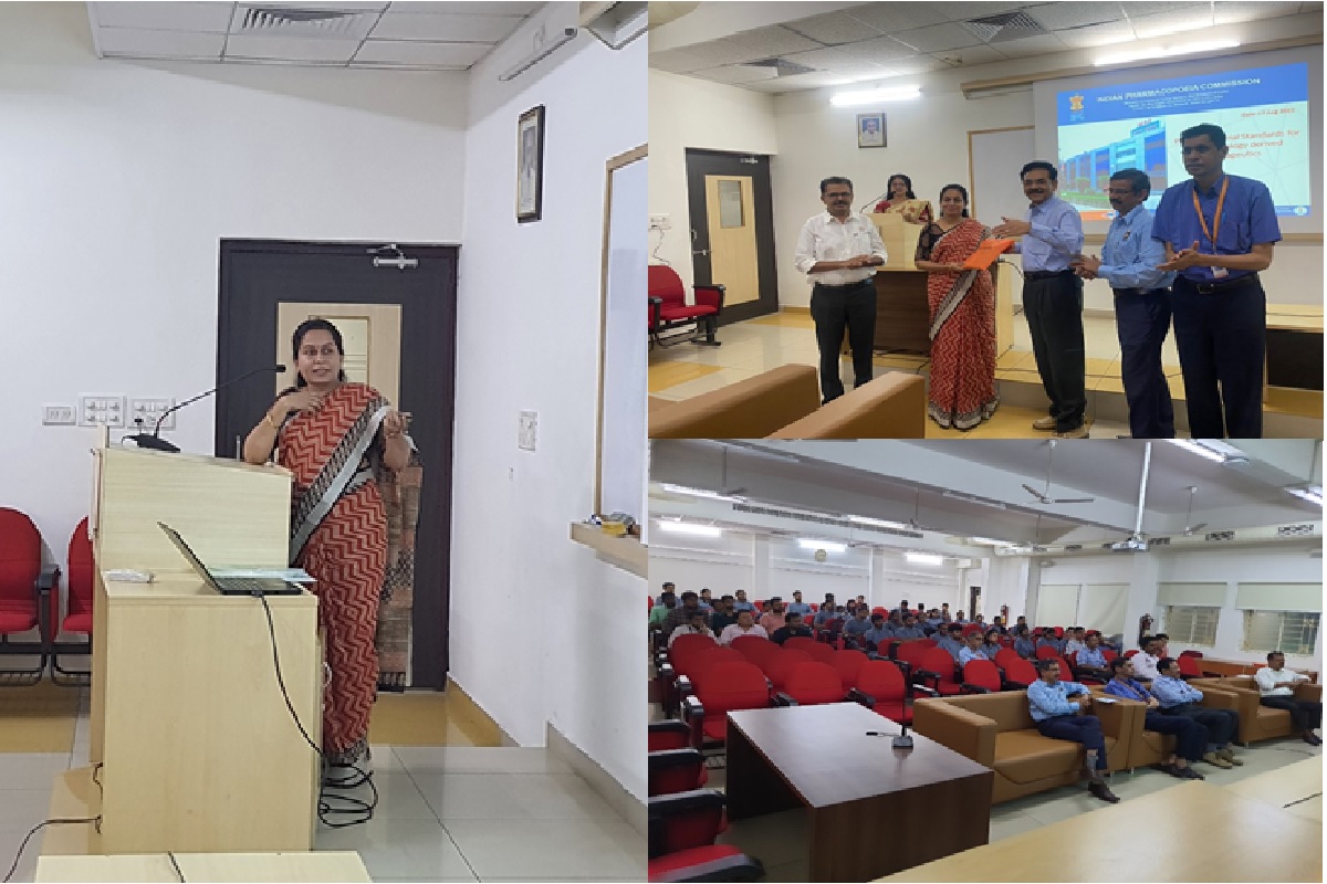 During the Diamond Jubilee year celebrations of MCOPS, the Department of Pharmaceutical Biotechnology organized a Guest lecture on ‘Pharmacopoeia Standards of Biotechnology-Derived Therapeutics’ on 17 August 2023, in PGR hall at 2.30 PM. Dr Kalaivani M, Senior Scientific Officer and Officer-in-charge, Biologics Division, Indian Pharmacopoeia Commission, Ministry of Health and Family Welfare, Govt. of India was the speaker. Dr Kalaivani commenced her talk by explaining the basics of Pharmacopeia standard requirements after which she explained the process of development of monographs, how the process differs in the case of biological products from small molecules, various approval processes involved, and recent changes in the testing procedures for determining efficacy and toxicity standards.