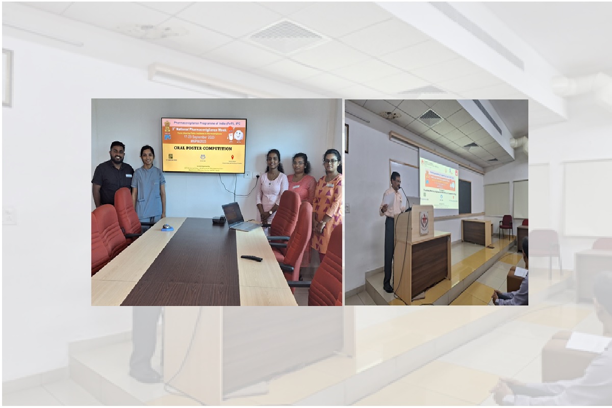On the momentous occasion of the 125th Birth Anniversary of our visionary founder Dr TMA Pai, the National Pharmacovigilance Week (NPW) celebration 2023 was jointly organized by the Department of Pharmacy Practice and the Centre for Pharmaceutical Care, MCOPS, MAHE, Manipal. Events like quiz competitions, poster competitions, and public speech competitions were conducted on this occasion. The quiz was based on the current affairs related to the pharmacovigilance. The event was conducted in the seminar hall of the Department of Pharmacy Practice, MCOPS, MAHE, at 12:30 pm on 21 September 2023. Dr Muhamed Salim, Assistant Professor, Department of Pharmacy Practice, was the quiz master. Mr Muhammed Rashid PP and Ms Pooja Gopal Poojari bagged the first prize in the quiz competition. The poster presentation was organized on the second day of the celebration, with the theme “Boosting Public Confidence in Pharmacovigilance”.