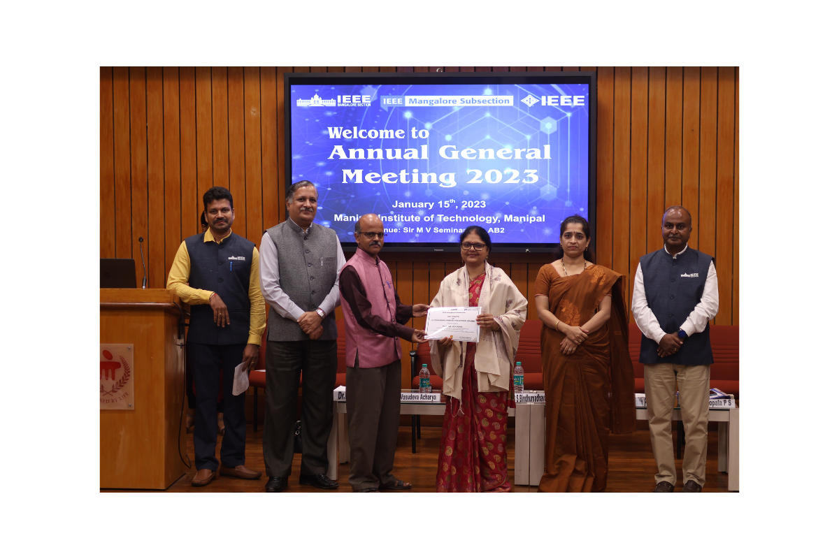 Dr. Pallavi R Mane, Professor, Senior Member-IEEE, Department of Electronics and Communication Engineering, has received an outstanding Woman Volunteer Award (MSS-OWV) 2022 from IEEE Mangalore Sub-Section (MSS). The award program was graced by Shree B. S. Bindhumadhava, Senior Director, at the Centre for Development of Advanced Computing (C-DAC), Ministry of electronics and information Technology (MeitY), Govt. of India.