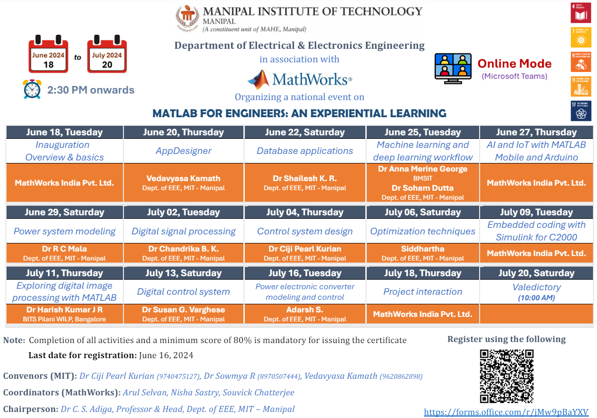 A National event organized by the Department of Electrical & Electronics Engineering, MIT - Manipal, in association with MathWorks India Pvt. Ltd.