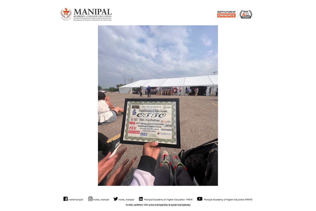 Among the 29 participating teams, only 13 were deemed qualified to partake in auto-navigation trials on the designated course. MIT Manipal creation, Otto, flawlessly traversed a distance of 365 feet. It stood as a testament to the brilliance of team's ingenuity and unwavering dedication.