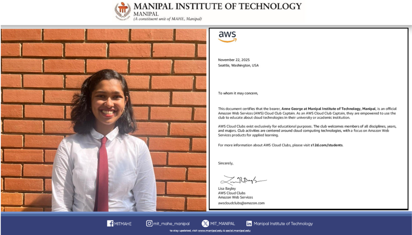 We are proud to announce that Anne George has been selected as the first AWS Cloud Club Captain of our college, leading the establishment of our inaugural cloud computing community — AWS Cloud Clubs MIT Manipal.