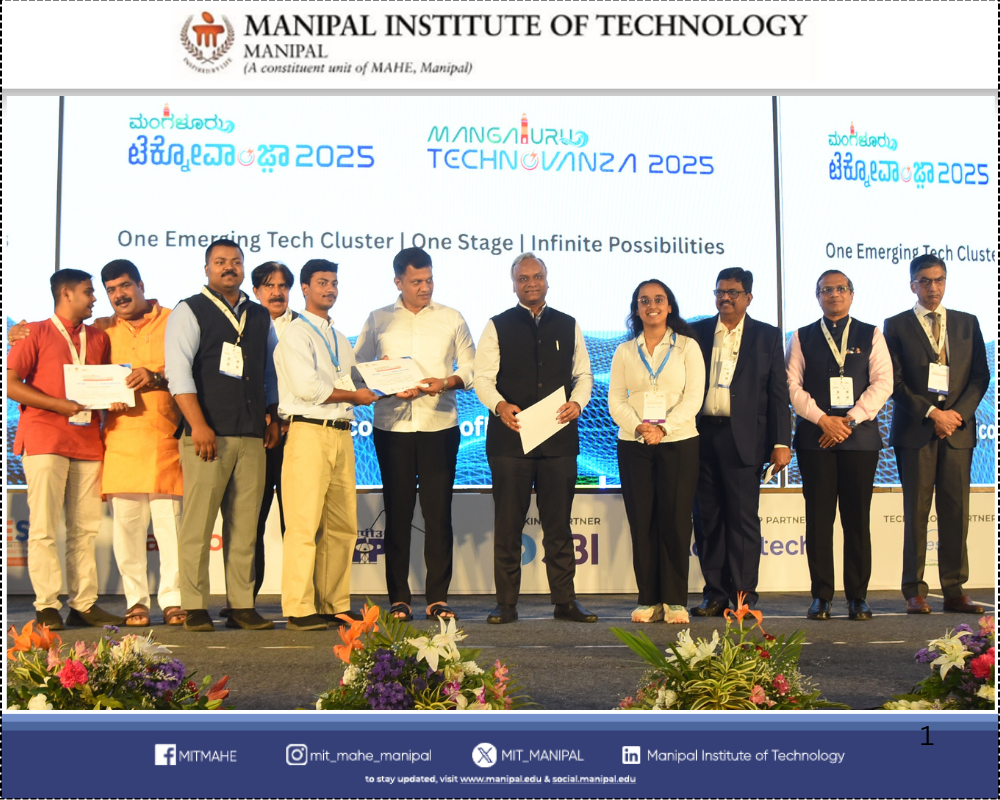 Navmarg Research and Technologies Pvt. Ltd., an MIT Manipal-incubated startup, was recognized among the Top 3 Startups and declared the Winner of the Mangaluru Blue Track at Mangaluru Technovanza 2025. The felicitation ceremony was held on 25th September 2025 in the presence of Hon’ble IT & BT Minister of Karnataka, Shri Priyank Kharge, Mr. Mohandas Pai, and other distinguished guests.