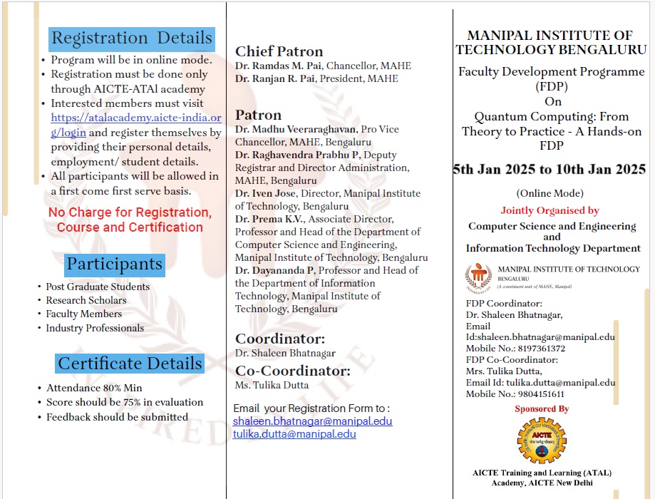 We’re excited to announce an incredible 6-day FREE Online Faculty Development Program (FDP) approved by AICTE, focused on the cutting-edge world of Quantum Computing!