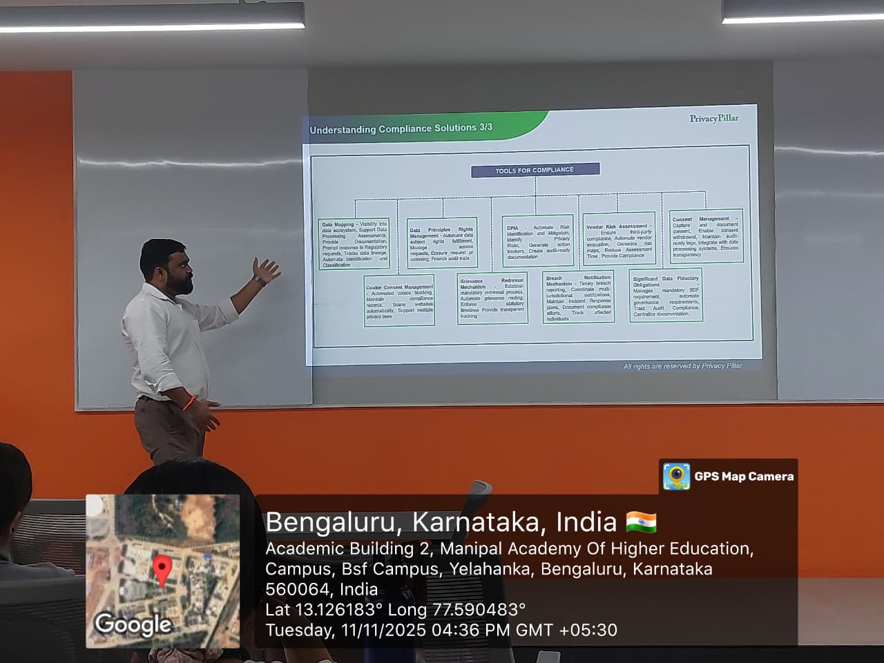 MLS hosted Mr. Akhilesh, Ms. Krithi S., and Ms. Harshitha Reddy from Privacy Pillar on 11 November 2025 for an insightful guest lecture on Privacy Compliance Solutions. The session offered practical perspectives on how organisations navigate India’s evolving data protection landscape and implement compliance frameworks under the DPDPA. The interactive discussion further deepened students’ awareness of risk assessments, data integrity, and user trust.