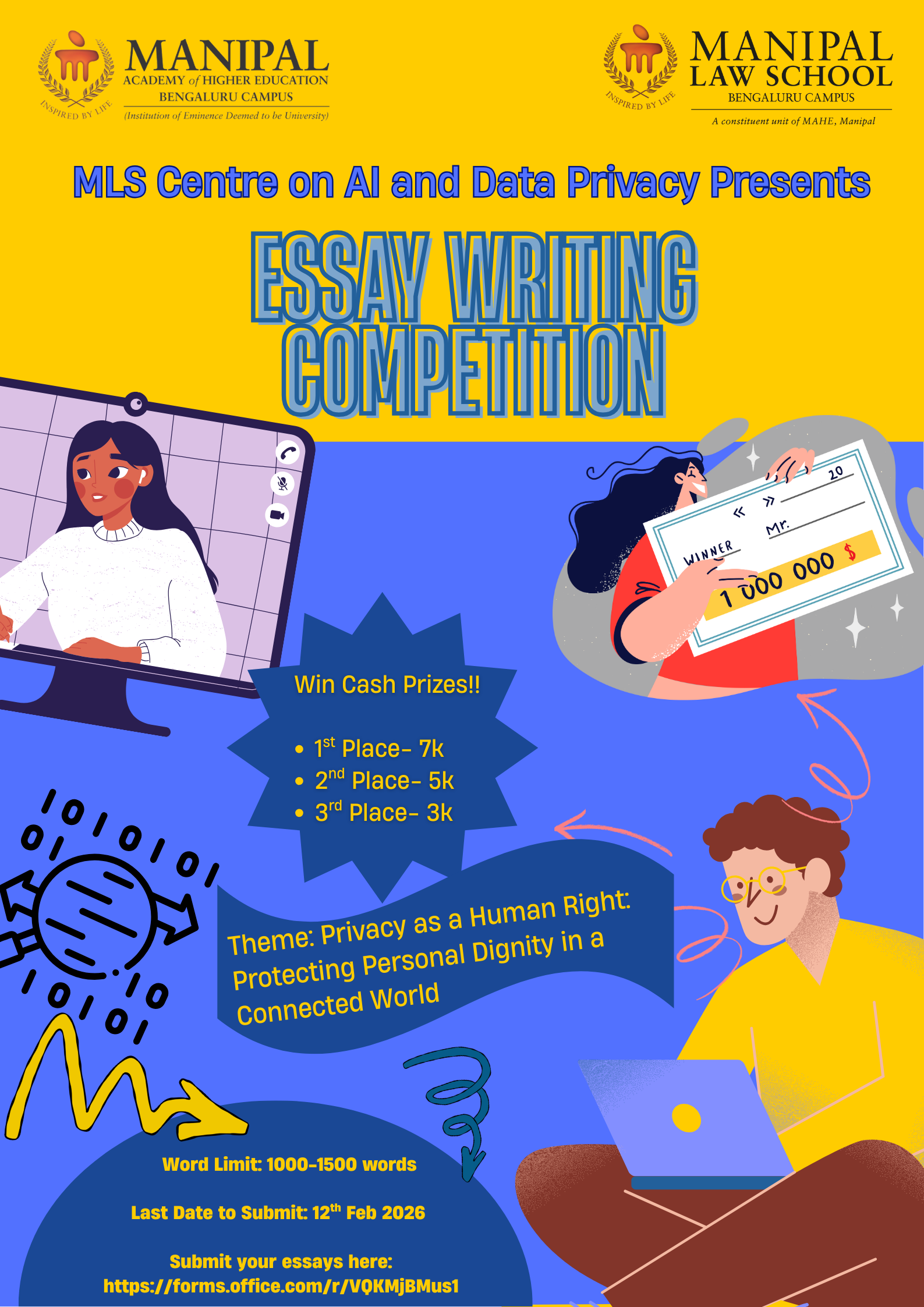 On the occasion of Privacy Day, our law school announced an essay writing competition for the students on the theme of data privacy as a fundamental right. The MLS Centre on AI and Data Privacy Laws will be evaluating the submissions and cash prizes will be awarded to top 3 essays.