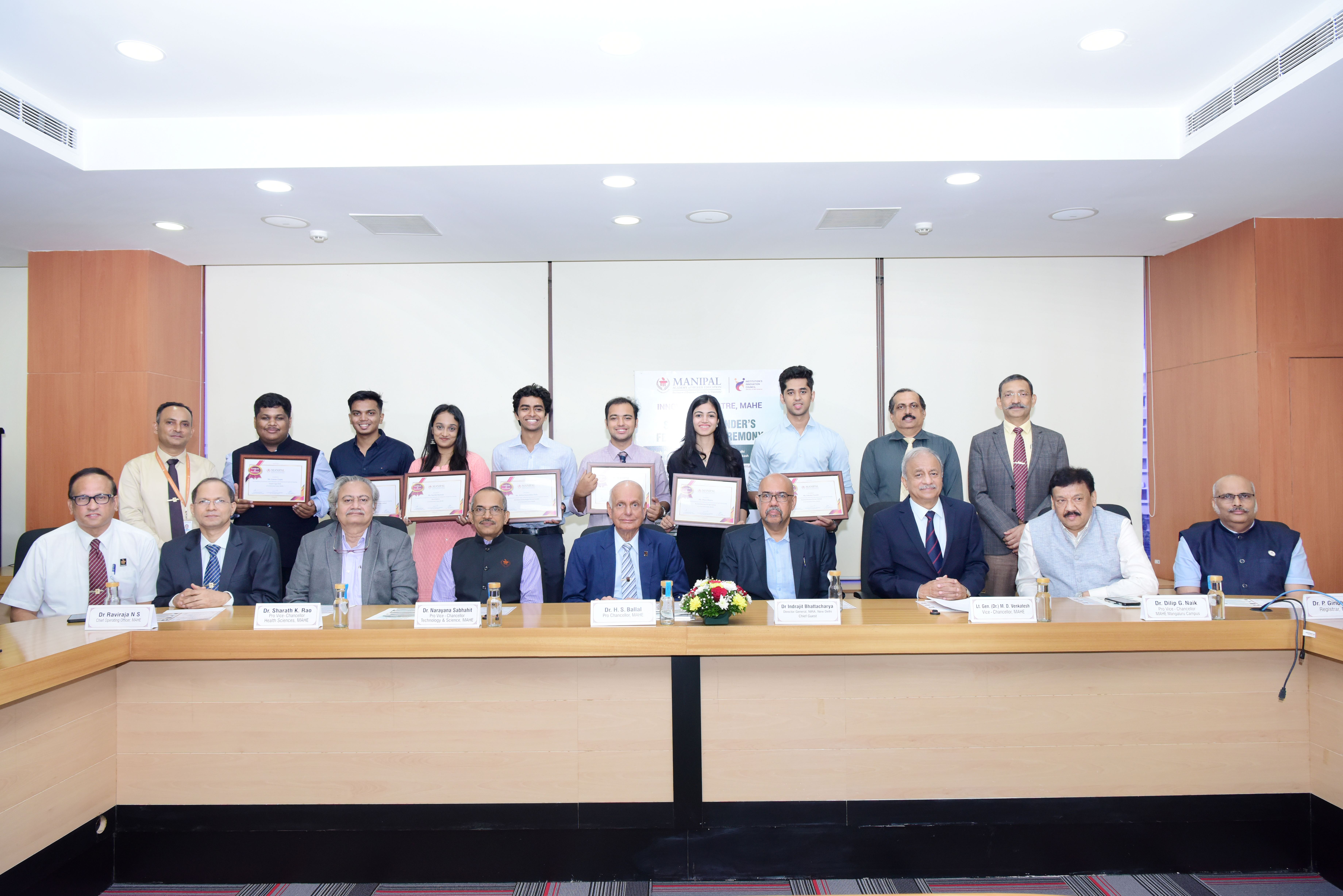 On November 9, 2024, the Innovation Centre, MAHE hosted the inaugural Start-Up Founder’s Felicitation Ceremony at the Senate Hall, MAHE, celebrating the achievements of graduating student entrepreneurs. The event was graced by Lt. Gen. (Dr.) M.D. Venkatesh, Vice Chancellor, Dr. H.S. Ballal, Pro Chancellor, and Dr. Indrajit Bhattacharya, Director General of NIRA, along with faculty, institution heads, and family members. The ceremony recognized outstanding student-led start-ups across diverse sectors, including Baylink Business (RetailTech), Mind Matters (HealthTech), Unparalleled Learning Tech (EdTech), SafeStone Technologies (SafetyTech), Gaurav Agro Tech (AgriTech), and SaiphiaDUS (Drones & Robotics). The event highlighted MAHE’s robust entrepreneurial ecosystem, providing incubation, mentorship, and funding to transform ideas into impactful ventures. Through this celebration, MAHE honored innovation and inspired the next generation of student entrepreneurs to pursue meaningful, real-world impact.