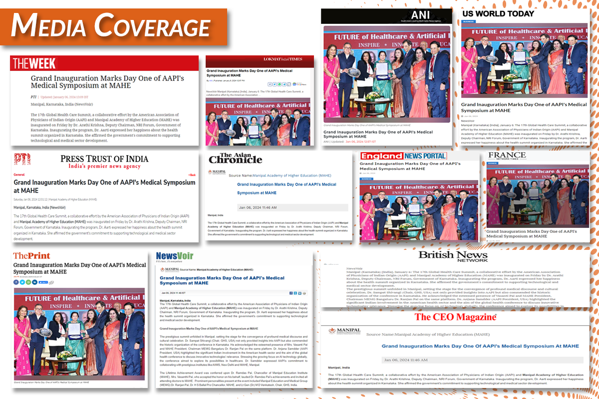 The prestigious summit unfolded in Manipal, setting the stage for the convergence of profound medical discourse and cultural celebration. Dr. Sampat Shivangi (Chair, GHS, USA) not only provided insights into AAPI but also commended the historic organisation of the conference in Karnataka. He acknowledged the esteemed presence of Mrs. Vasanti Pai and MAHE President MAHE Trust, Chairman MEMG Bangaluru Dr. Ranjan Pai on the same platform. Dr. Anjana Samdder (AAPI President, USA) highlighted the significant Indian involvement in the American health sector and the aim of the global health conference to discuss innovative technologies' relevance. Stressing the growing focus on AI technology globally, the conference aimed to explore its possibilities in healthcare. Dr. Samdder expressed AAPI's commitment to collaborating with prestigious institutes like AIIMS, New Delhi and MAHE, Manipal.