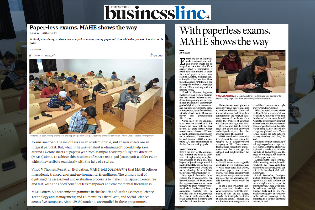 Manipal, 16, July 2023 – The author’s article, Paper-less exams, MAHE shows the way, by Dr Vinod V Thomas, Registrar Evaluation, Manipal Academy of Higher Education MAHE, Manipal.