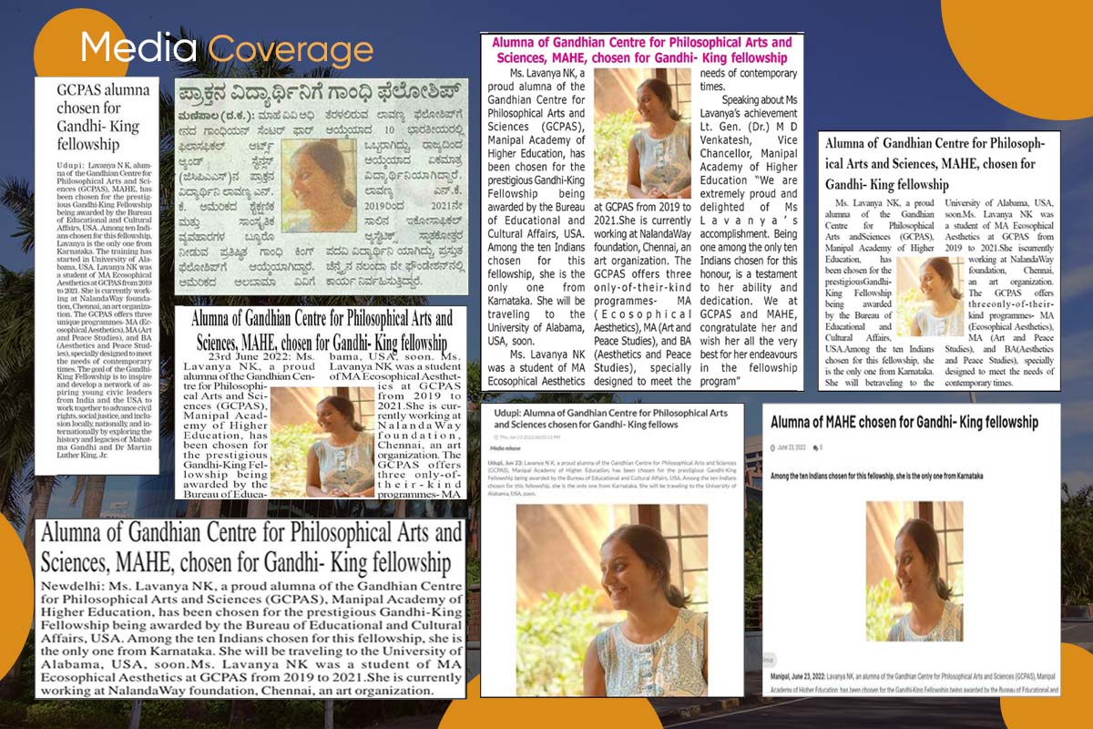 Manipal, 23rd June 2022: Ms. Lavanya NK, a proud alumna of the Gandhian Centre for Philosophical Arts and Sciences (GCPAS), Manipal Academy of Higher Education, has been chosen for the prestigious Gandhi-King Fellowship being awarded by the Bureau of Educational and Cultural Affairs, USA. Among the ten Indians chosen for this fellowship, she is the only one from Karnataka. She will be traveling to the University of Alabama, USA, soon.