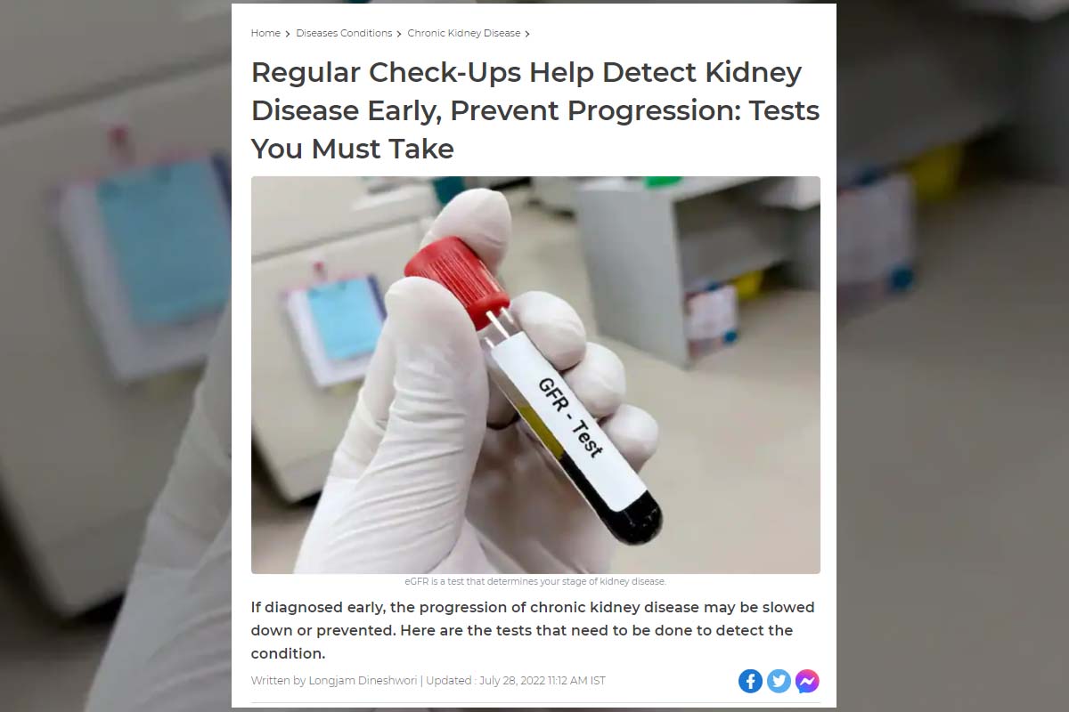 Manipal, 28th July 2022: The author’s article, Regular Check-Ups Help Detect Kidney Disease Early, Prevent Progression: Tests You Must Take, by Dr Shankar Prasad N, Professor, and Head, Department of Nephrology, Kasturba Medical College, Manipal, and Dr Srinivas Vinayak Shenoy, Associate Professor, Department of Nephrology, Kasturba Medical College, Manipal.
