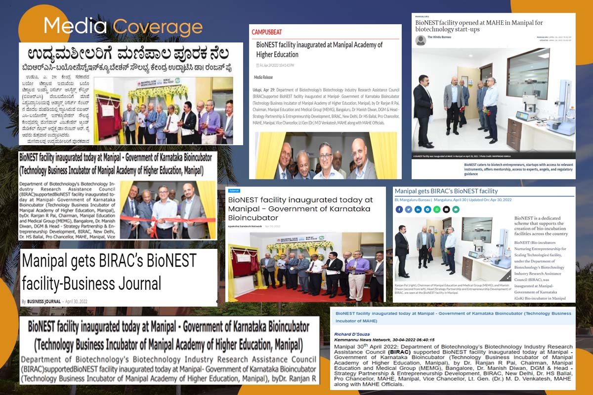 BioNEST Incubation facility at MAHE, Manipal, promotes technology innovations for the development of knowledge-based enterprises with successful business models. Bioincubator provides world-class faculties, infrastructure, and services for the incubation of start-ups in various domains of biopharma, biomedical devices, dental innovation, biotechnology, healthcare, and diagnostics.