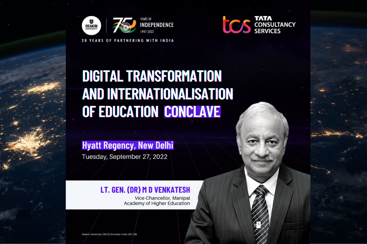 Manipal, September 21st, 2022: Deakin University and TCS will be organizing an International Conclave to deliberate the Digitization and Internationalization of Education. The conclave will be held on Tuesday, 27th September 2022, in New Delhi. Building an ecosystem around education, skills, research, and innovation along with digital transformation remains its top priority to emerge as a knowledge economy.