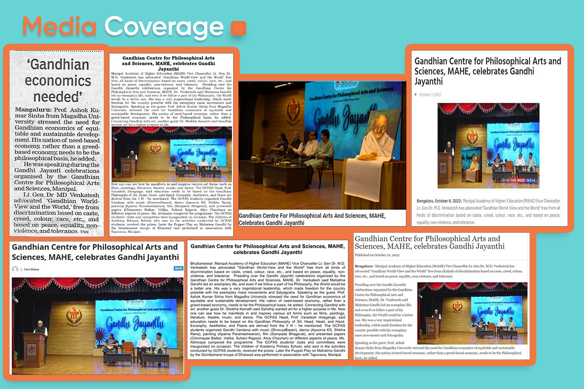 Manipal, 2nd October 2022: Manipal Academy of Higher Education (MAHE), Manipal Vice Chancellor Lt. Gen Dr. M.D. Venkatesh has advocated "Gandhian World-View and the World" free from all kinds of discrimination based on caste, creed, colour, race, etc., and based on peace, equality, non-violence, and tolerance.
