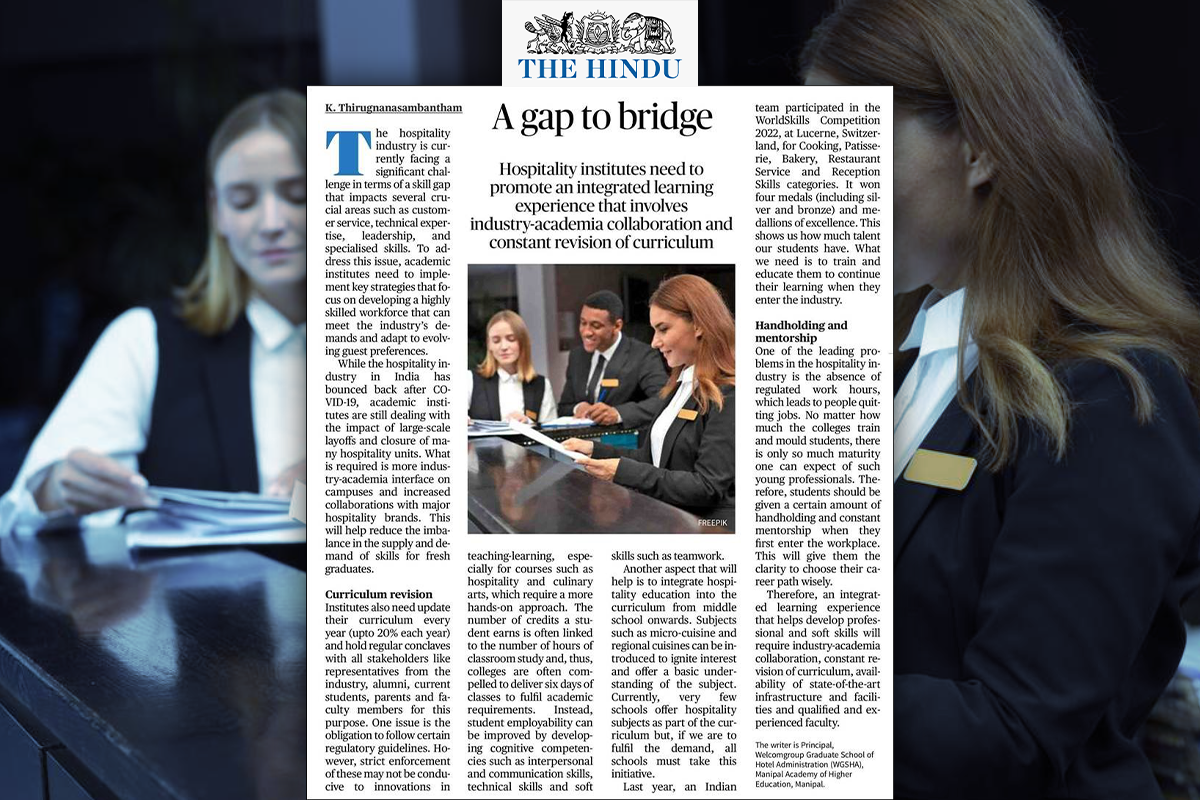 In the article, Chef K. Thirugnanasambantham discussed the roles an institute can play in filling the gap in the hospitality sector. He also highlighted the requirement for more industry-academia interfaces on campuses and increased collaborations with major hospitality brands.