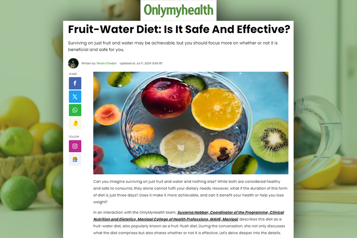 Manipal, 17 July 2024: The author's article, Fruit-Water Diet: Is It Safe And Effective? by Suvarna Hebbar, Coordinator, Clinical Nutrition and Dietetics, Manipal College of Health Professions, MCHP, Manipal.