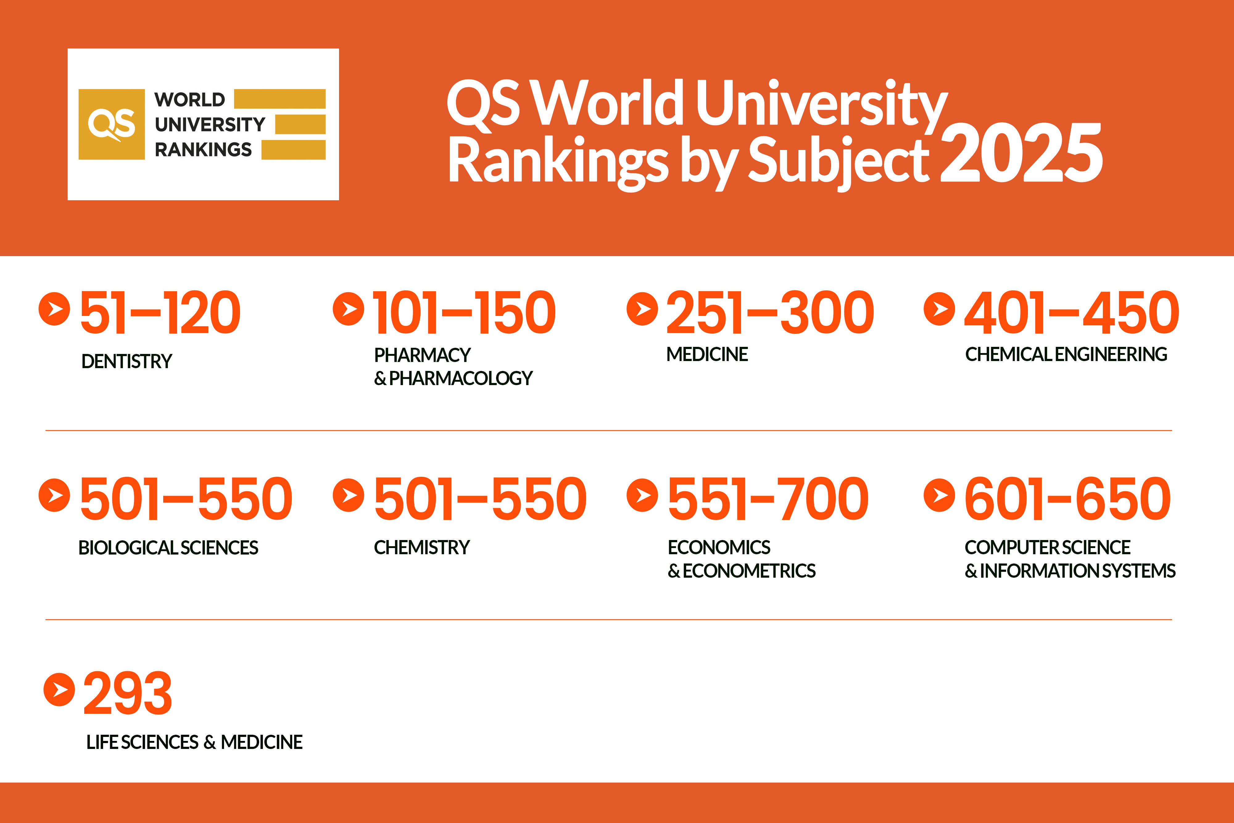 - Pharmacy & Pharmacology: Ranked 101–150, climbing an impressive 50 places.