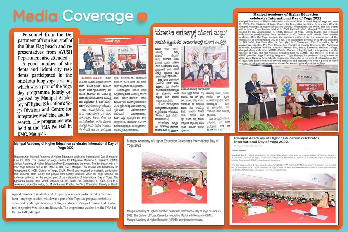 Manipal, 22nd June 2022: Manipal Academy of Higher Education celebrated International Day of Yoga on June 21, 2022. The Division of Yoga, Centre for Integrative Medicine & Research (CIMR), and Manipal Academy of Higher Education (MAHE) coordinated the event.