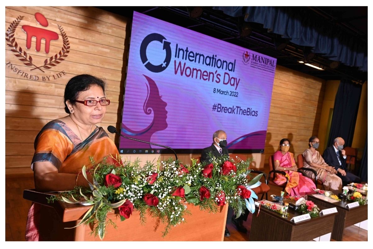 Mrs Vasanti R Pai, Trustee, MAHE, giving the Presidential Address said “I welcome Ms. Rekha Sharma and it’s an honour to have her on this day. This year's International Women's Day theme is 'breaking the bias' and it's about working towards a world free of stereotypes and discrimination. A world that is diverse, equitable, and inclusive. Though 2021 has been continued a year full of challenges due to the pandemic women have shown courage and proved themselves to be strong and they can achieve whatever they want at any age if they make up their mind. I wish everyone a very happy and healthy Women’s Day”.