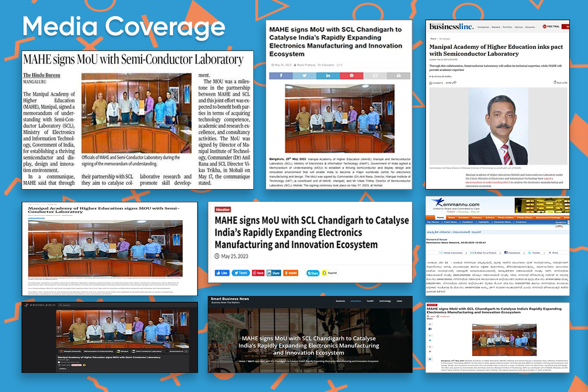 The MoU was signed by Commander (Dr) Anil Rana, Director, Manipal Institute of Technology (MIT) (a constituent unit of MAHE, Manipal) and Mr Vikas Trikha, Director Semiconductor Laboratory (SCL), Mohali. The signing ceremony took place on May 17, 2023, at Mohali.