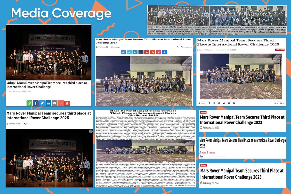 The team leader Mr Yashash Rao, Mars Rover Manipal, Student of Aeronautical - 3rd Year, MIT-Manipal also expressed his gratitude and said, "The journey towards success is never an easy one. It is one filled with countless challenges, sleepless nights, and tireless effort. However, it is precisely this journey that makes any achievement worth celebrating. And that is precisely what the team of Mars Rover Manipal did when they qualified for the finals of IRC 2023."