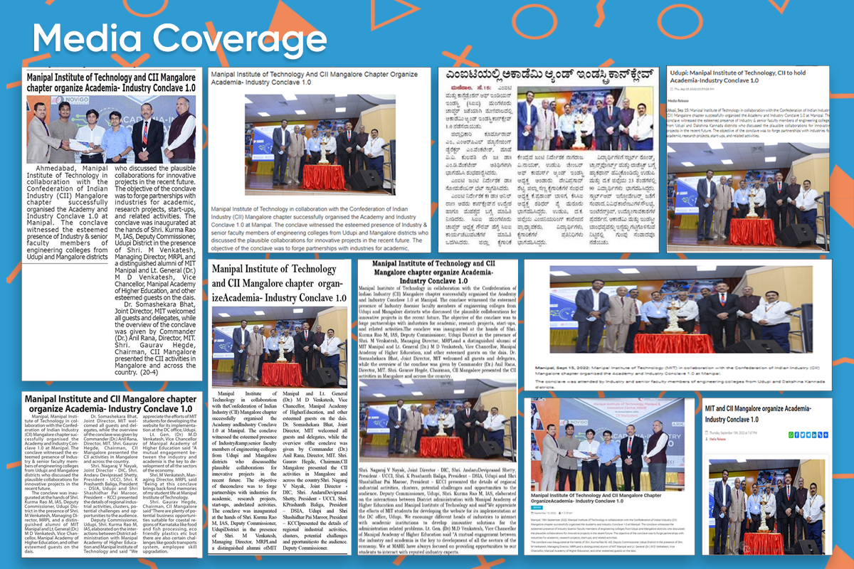 Expressing his happiness on the success of the conclave, Cdr (Dr) Anil Rana, Director, MIT, MAHE, Manipal said, “I express my gratitude and extend my congratulations to the entire team at MIT and CII for successfully organizing Academy and Industry Conclave 1.0. Around 26 industry representatives and heads of CII-Mangalore, KCCI, UCCI, and DSIA along with regional institutes participated in the event. This conclave has paved the way for more such fruitful collaborations in the future. We urge the local industries to connect with our Institute and share their challenges to find feasible solutions through mutual engagement.”