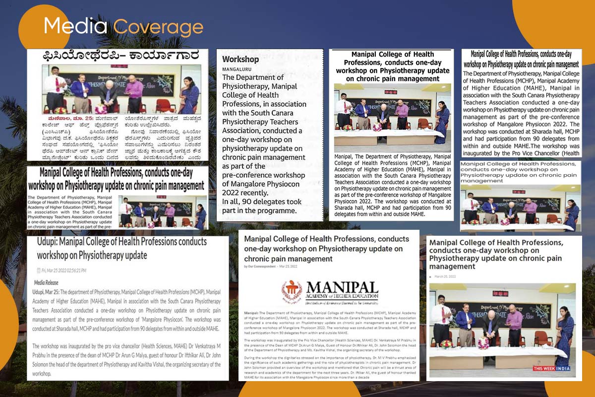 Manipal, 28th March 2022: The Department of Physiotherapy, Manipal College of Health Professions (MCHP), Manipal Academy of Higher Education (MAHE), Manipal in association with the South Canara Physiotherapy Teachers Association conducted a one-day workshop on Physiotherapy update on chronic pain management as part of the pre-conference workshop of Mangalore Physiocon 2022. The workshop was conducted at Sharada Hall, MCHP, and had the participation of 90 delegates from within and outside MAHE.