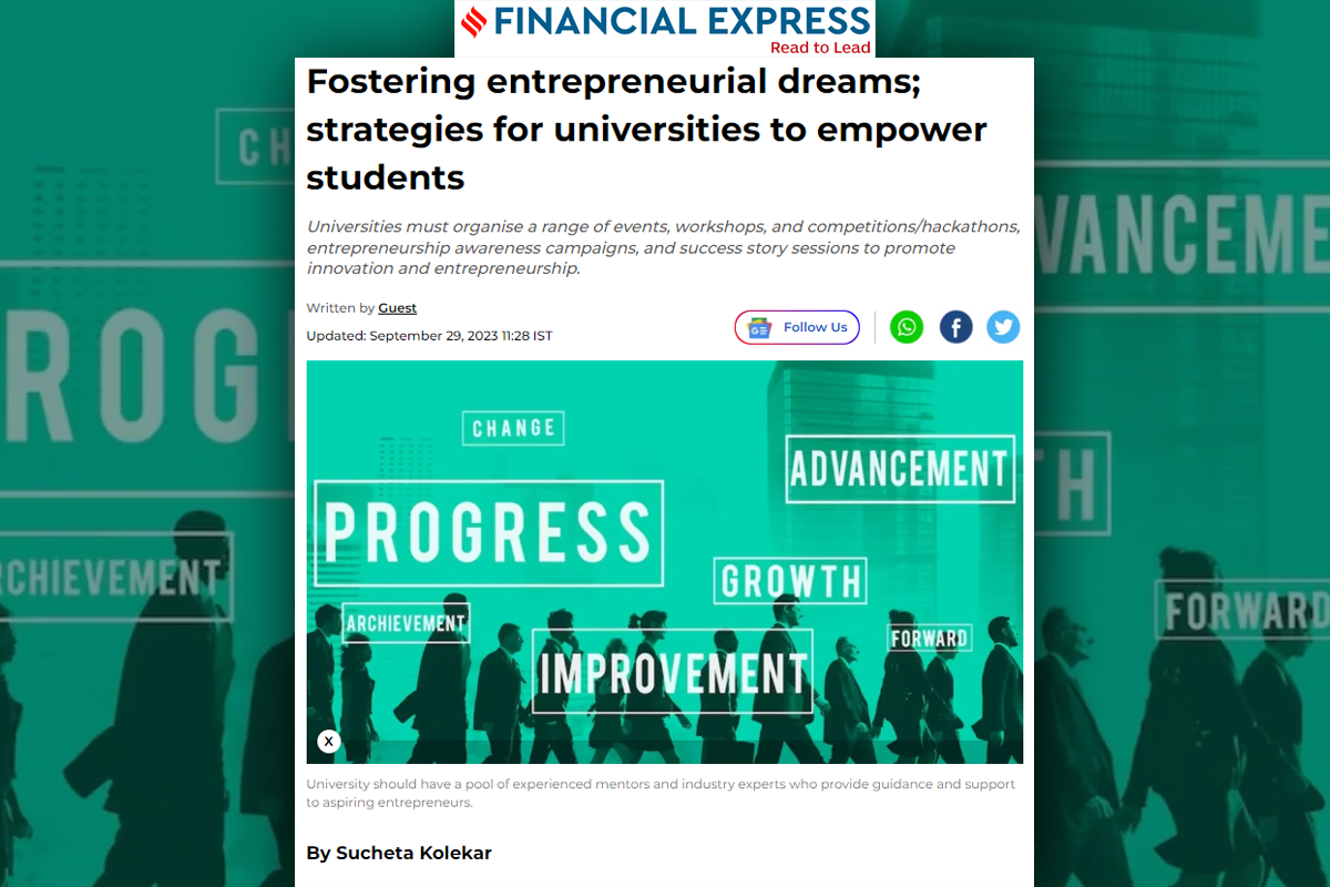 In the article, Dr Sucheta Kolekar discussed how universities should nurture the entrepreneurial ideas of students to improve start-ups and foster entrepreneurship. Dr Sucheta also suggested a few strategies to promote entrepreneurship within academic institutions.