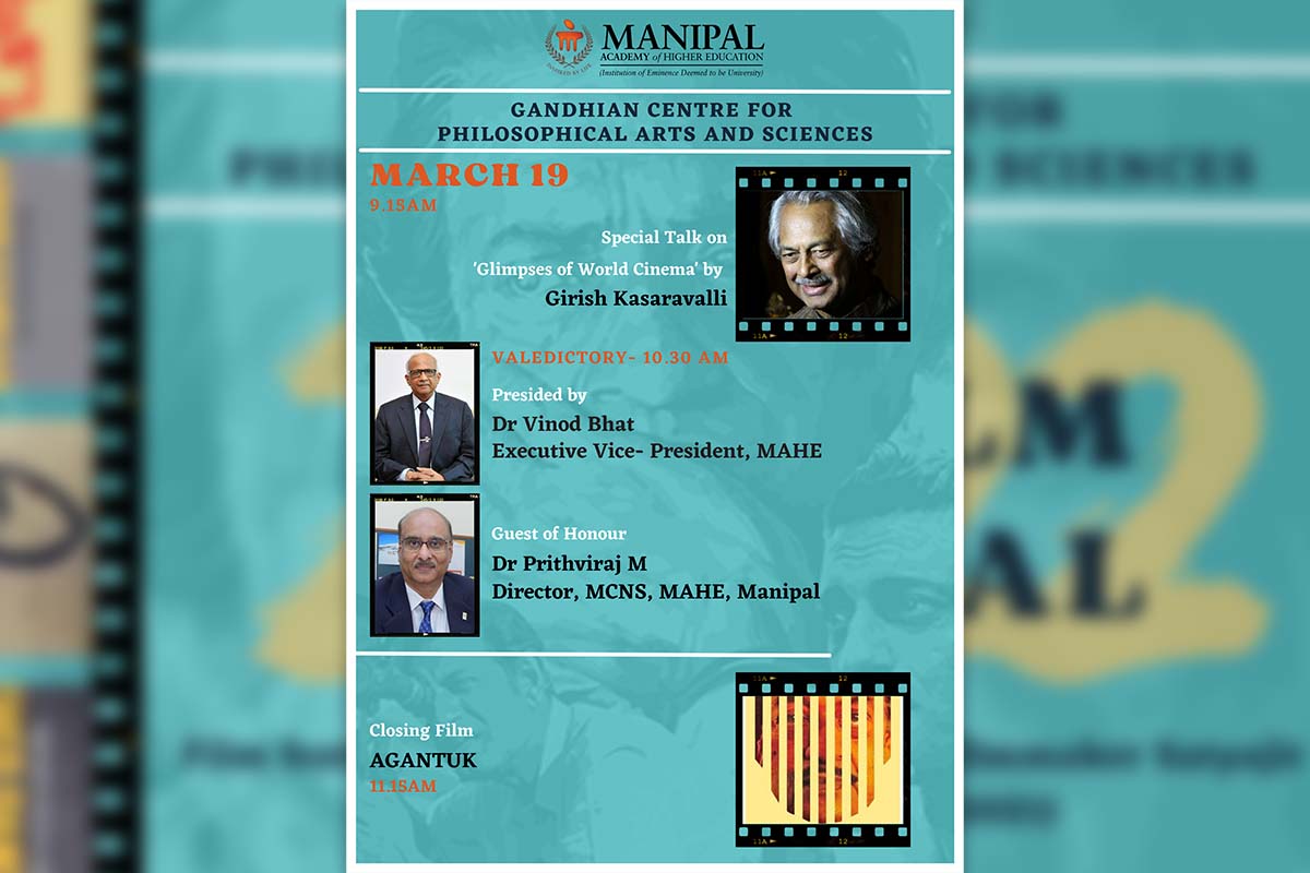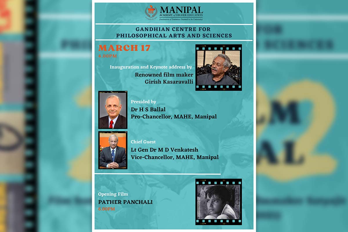 Manipal, 16th March 2022: The three-day Satyajit Ray Film Festival (March 17- 19, 2022) will be inaugurated by renowned filmmaker Girsh Kasaravalli on March 17 at 4 pm. The film festival, which commemorates the birth-centenary of master filmmaker Satyajit Ray (1921-2021), is being organized by Gandhian Centre for Philosophical Arts and Sciences, MAHE, Manipal.