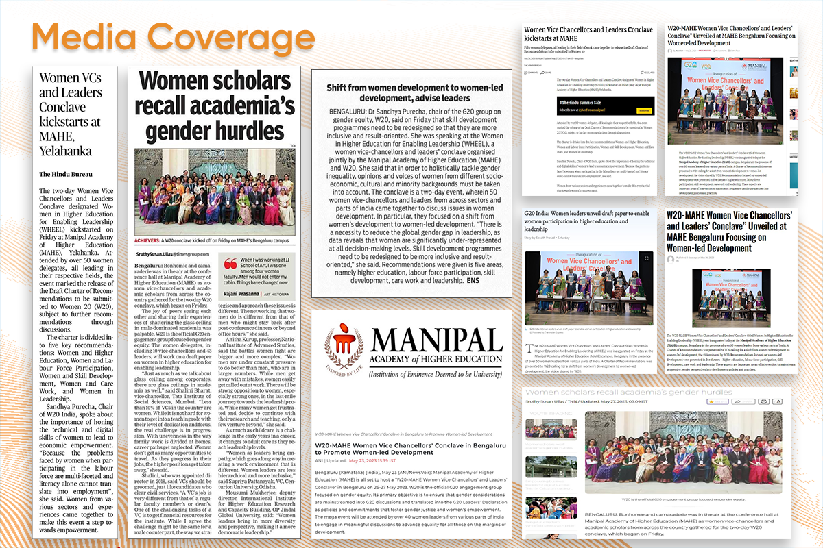 W20-MAHE Women Vice Chancellors' and Leaders' Conclave” Unveiled at MAHE Bengaluru focusing on Women-led Development