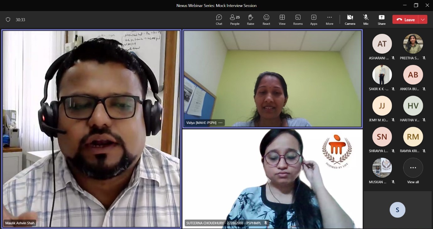 Dr Maulik Shah, Health Officer at UNICEF, Assam; Alumnus 2012-2014 batch, MPH Programme and Dr Harsh Rajvanshi, Technical Advisor at The Asia Pacific Leaders Malaria Alliance; Alumnus 2015-2017 batch mentored the students and prepared them to face job interview by conducting mock interview session.